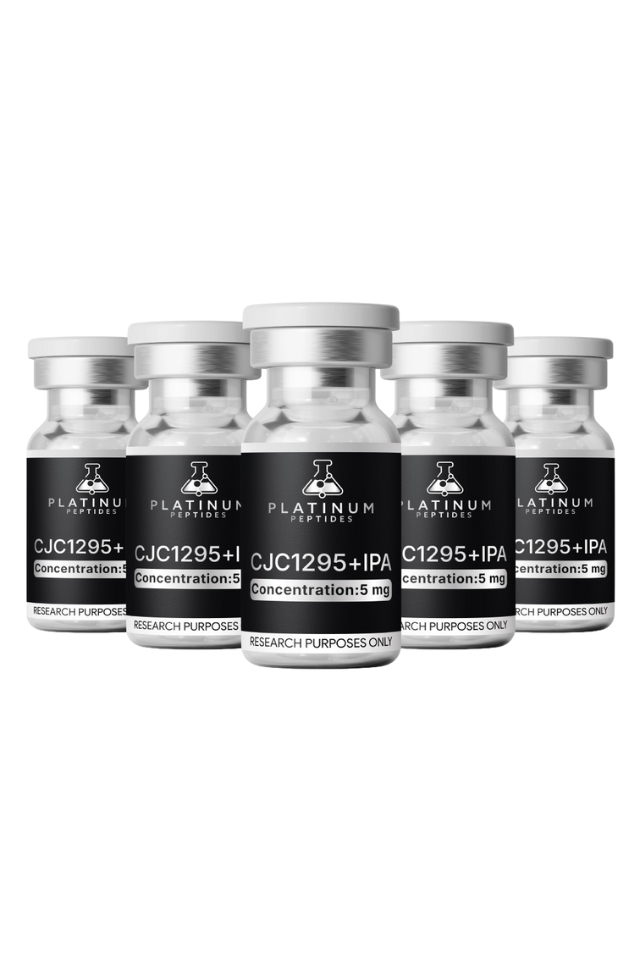 Our high-quality CJC-1295 + IPA peptide is available in a 5mg size, 5 vial pack. The product comes in a lyophilized powder form in a 3mL vial that requires Reconstitution Solution to reconstitute from solid to liquid form.