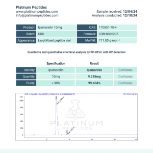 IPAMORELIN is a synthetic pentapeptide often studied as a growth hormone releasing peptide (GHRP). It is unique for its highly selective action, which makes it especially interesting in research focused on growth hormone (GH) secretion without broad off-target effects.