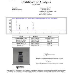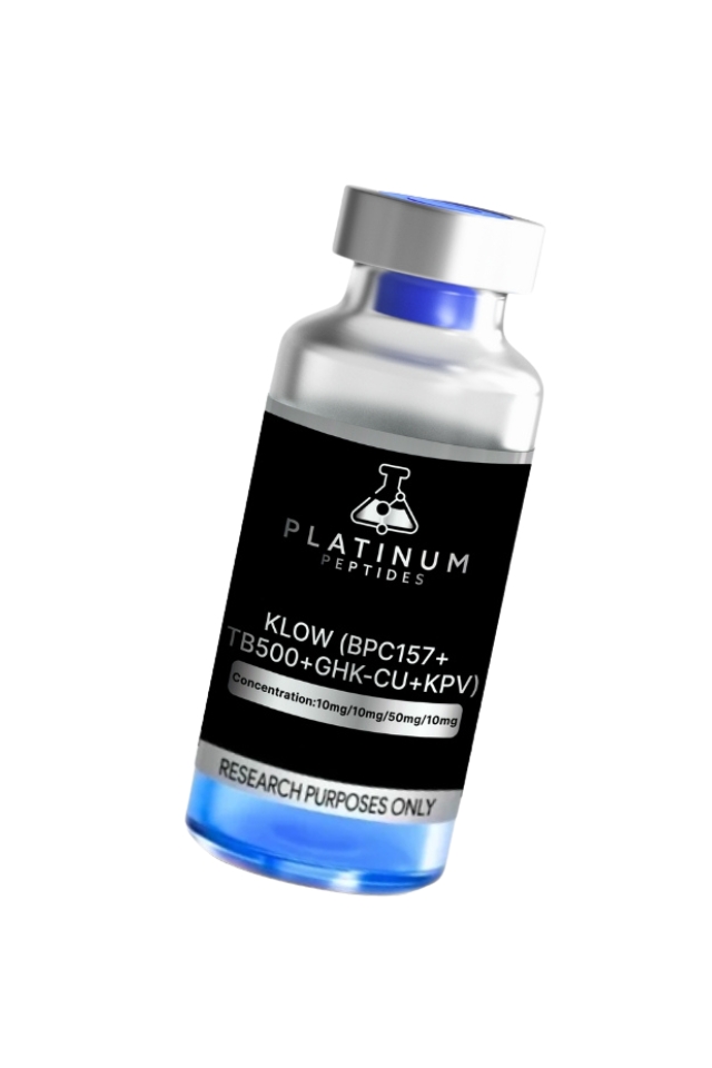 KLOW combines four peptides with complementary activity profiles, (BPC-157, GHK-Cu, TB-500, and KPV), into one formula, allowing researchers to explore potential synergies across tissue repair, inflammation, and regeneration models.