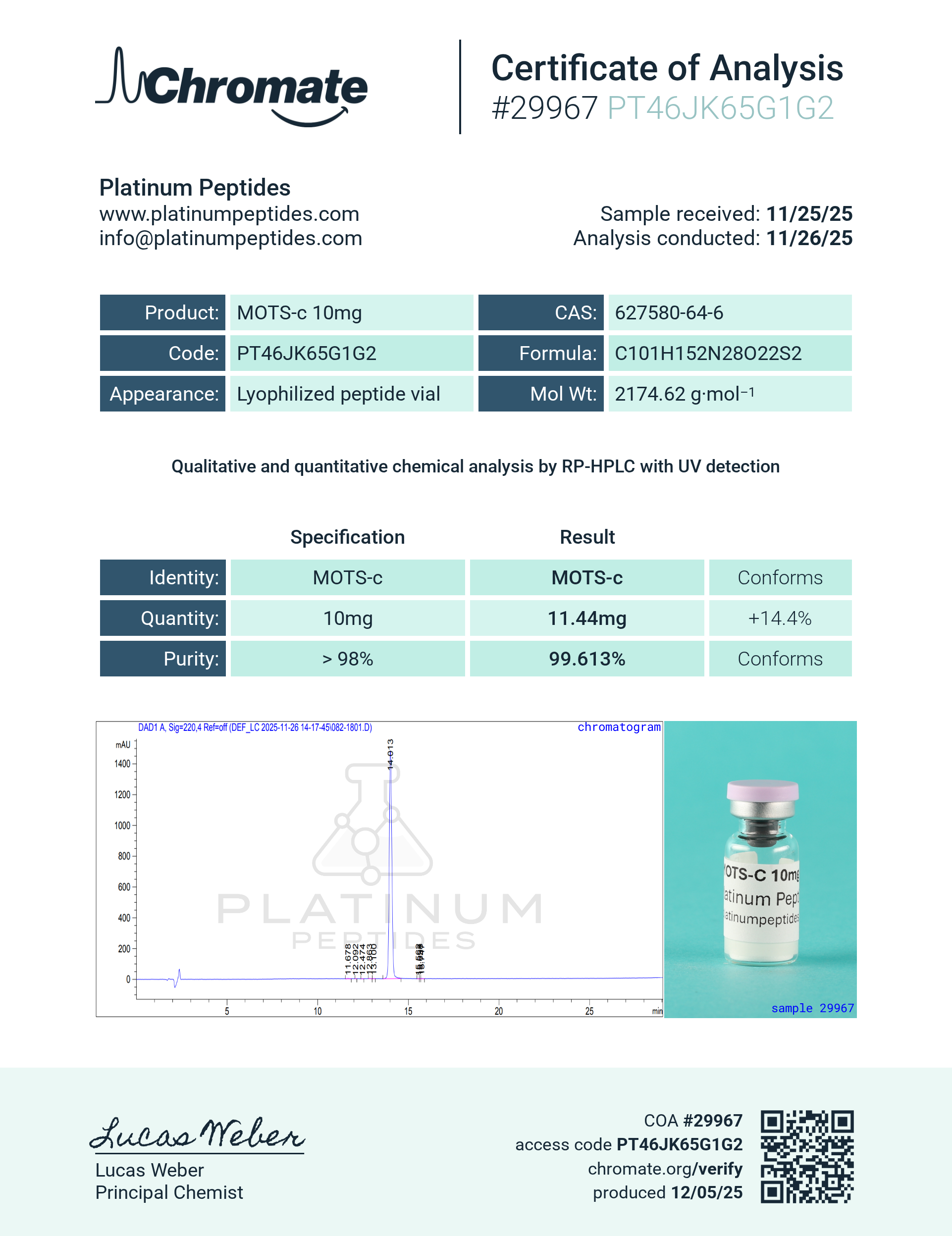 MOTS-C is a mitochondrial-derived peptide (MDP) encoded within the mitochondrial genome. It has gained strong research interest for its role in energy regulation, insulin sensitivity, and metabolic homeostasis.