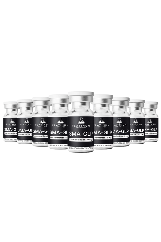 Our high-quality SMA-GLP (formerly SEMA) research peptide is available in a 10mg size, 10 vial pack. The product comes in a lyophilized powder form in a 3mL vial that requires Reconstitution Solution to reconstitute from solid to liquid form.
